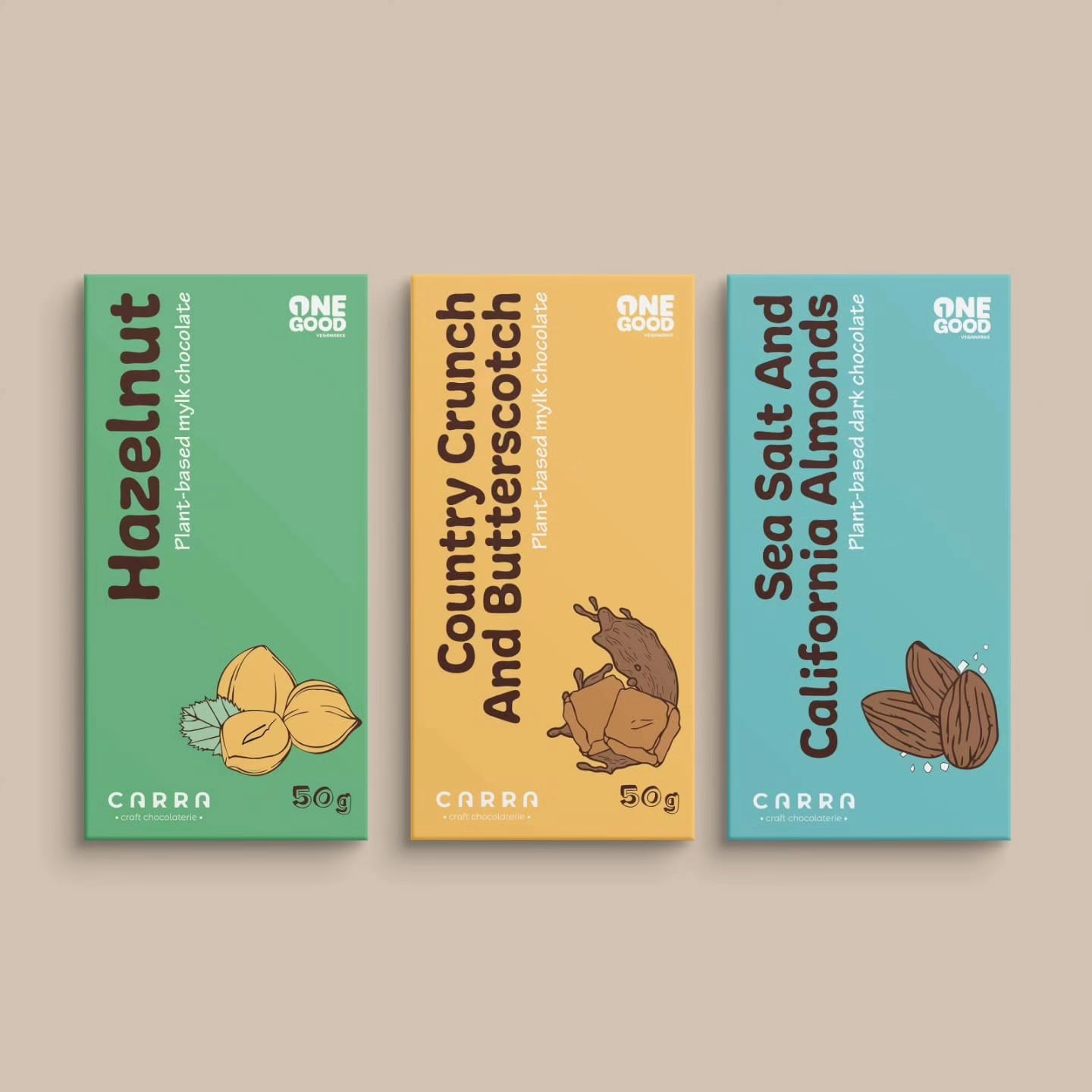 Minimalistic & Colorful Packaging for One Good Chocolates inspired by the ingredients