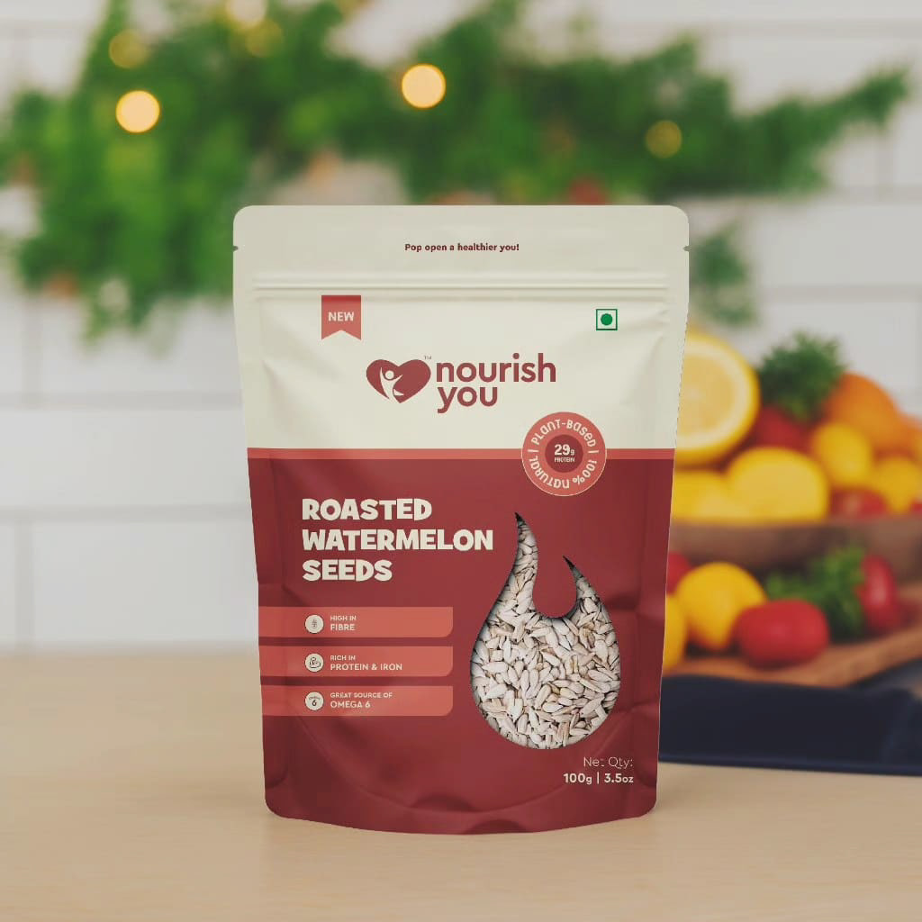 Minimalistic & See through packaging for Roasted seeds variants by Nourish You.