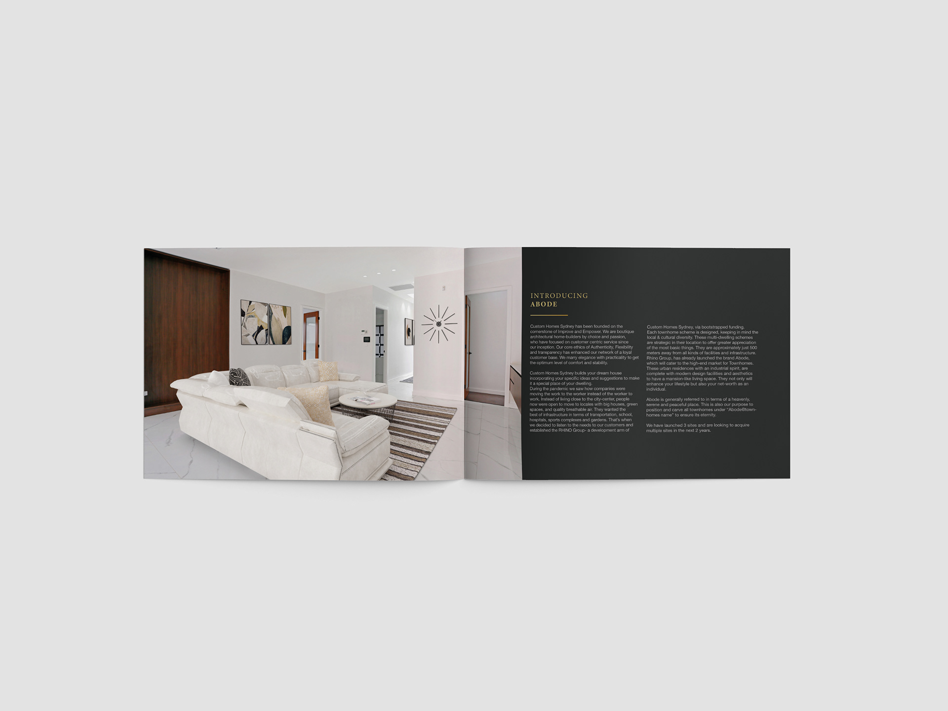 An elegant brochure for a township property in Sydney, Australia